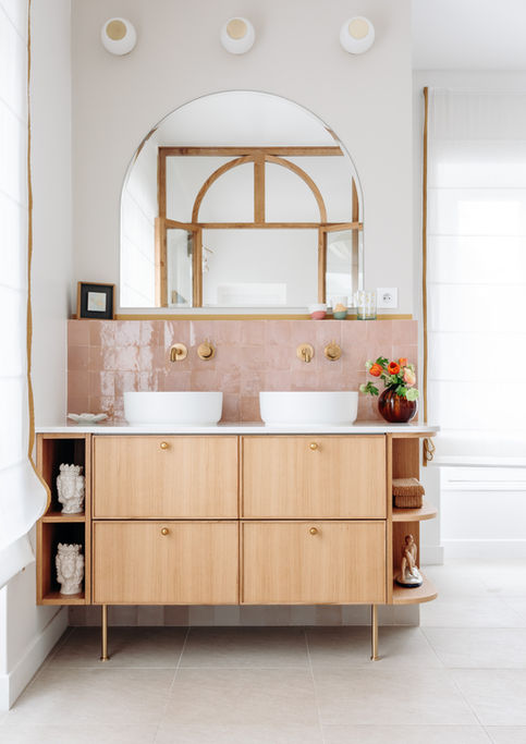 Dans cette maison bourgeoise localisée dans la jolie ville du Vésinet, nous sommes intervenues en tant qu’architecte d’intérieur dans le cadre de la rénovation complète du bien. L’idée était de retravailler l’ensemble de la surface d’un point de vue technique et esthétique. Les choix décoratifs en terme de couleurs notamment ont été dictés par l’univers éclectique, créatifs et colorés de notre cliente qui a été partie prenante également dans les choix de luminaires, de mobiliers et dans la décoration de manière générale. Nous avons tenu à conserver tous les éléments intéressants de l’architecture d’origine comme le sol de l’entrée ou encore le design des fenêtres en arche et le magnifique Bow-window. Nous avons complètement optimisé la maison en ajoutant des rangements intégrés dans chaque pièce. Nous avons dessiné tant la cuisine que la salle de bain parentale séparée de la chambre par une verrière en bois. En terme design, le processus créatif a été réfléchi selon l’architecture de la maison pour l’inscrire dans son intemporalité. Cette jolie maison a retrouvé un souffle nouveau qui répond au besoin de ses propriétaires et de leurs trois adolescents Une attention particulière a été apportée au confort et à la conservation de l’espace et sa modularité en vue des grandes réceptions amicales et familiales.